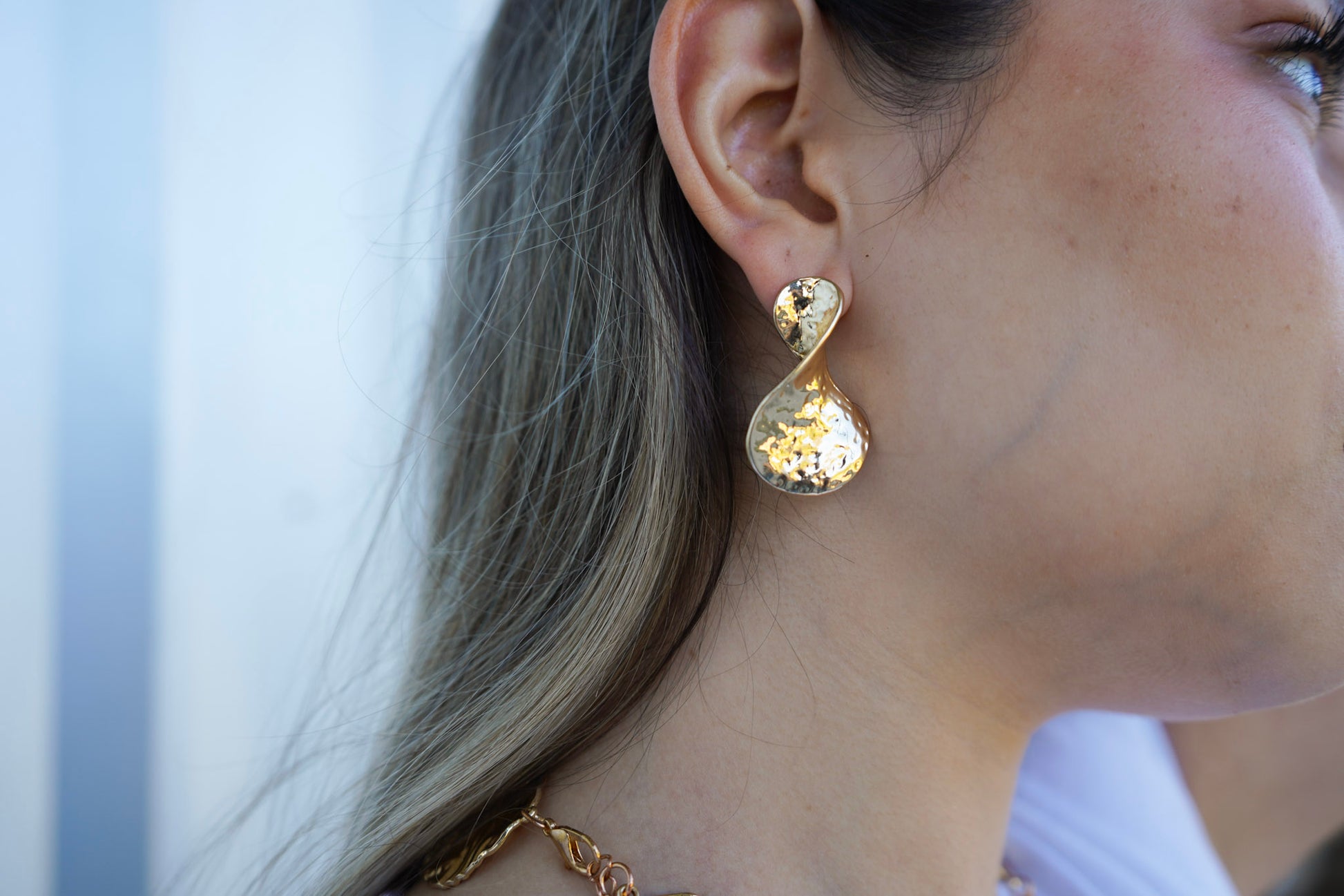 Modernos, artísticos y con alma de joya de autor. Los Aros Escultura Dorada se inspiran en las formas orgánicas del metal fundido, creando un efecto de movimiento y textura que atrapa la luz con cada giro. Su silueta curvada aporta sofisticación y un toque contemporáneo, perfectos para elevar cualquier look.